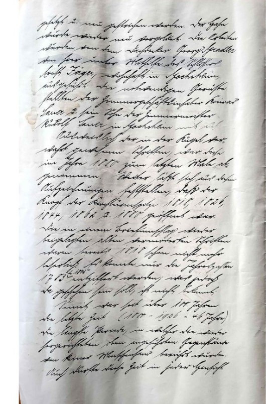 Es konnte nur die Jahreszahlen 1804 1783 entziffert werden; was jedoch da geschehen sein soll, ist nicht bekannt. Somit war seit über 100 Jahren die letzte Zeit (1880-1926=46 Jahre die längste Periode, in welcher die wieder hergerichteten oben angeführten Gegenstände von keiner Menschenhand berührt wurden, Auch dürfte diese Zeit in jeder Hinsicht gewesen sein, die jeweils eine Generation miterlebt haben kann. Es seien hier nur einige Ereignisse aus den letzten 12 Jahren angeführt. Als im Jahre 1914 der große Weltkrieg entbrannte, der bis November 1918 andauerte, mussten aus hiesiger Gemeinde insgesamt 400 Männer, Väter Söhne zu den Fahnen eilen, wovon 81 Helden infolge Todes bzw. Vermisst sein nicht mehr heimkehrten. In wie vielen fällen mag wohl die Kugel der Kirchturmspitze als höchster sichtbarer Punkt den letzten Gruß der Ortschaft den ins Feld gezogenen u. nicht mehr zurückgekehrten Bürgern entboten haben?